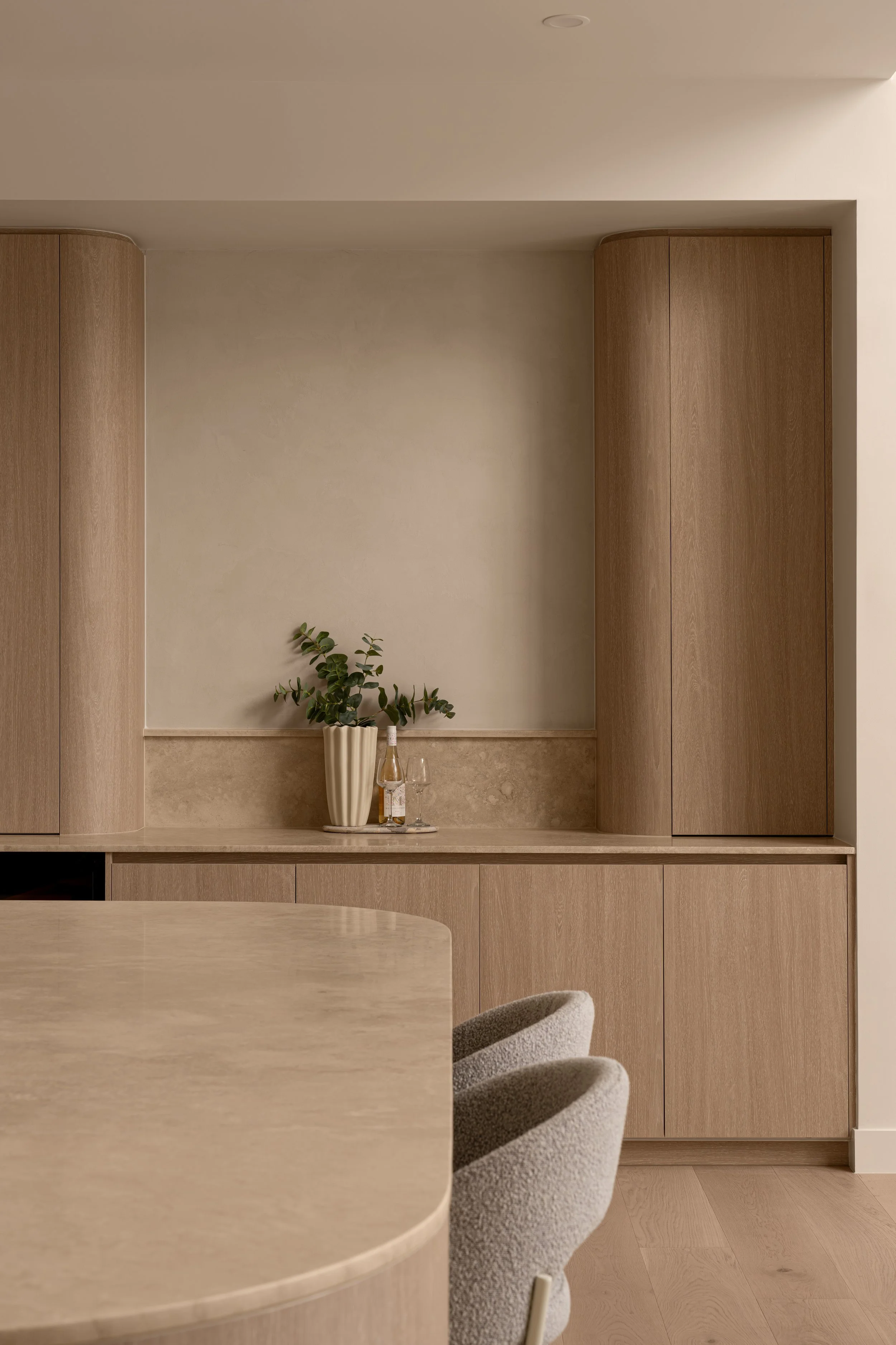 A restrained palette of travertine, minimal microcement and soft curves brings depth and character to the space. These natural elements work in harmony to create a refined yet inviting atmosphere, proving that simplicity can be just as captivating as it is intentional. Sintra Residence is a testament to the beauty of understated elegance - where less is not just more, but exactly enough.